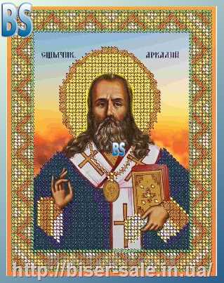 Схема, часткова вишивка бісером, атлас, ікона "Сщмч. Аркадій, еп. Бєжецький"