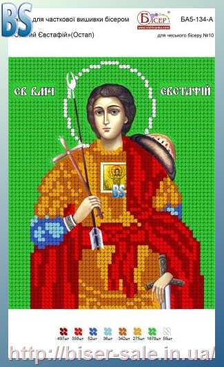 Схема, часткова вишивка бісером, атлас, ікона "Святий Євстафій (Остап)"