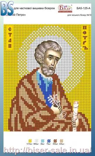 Схема, часткова вишивка бісером, атлас, ікона "Святий Петро"