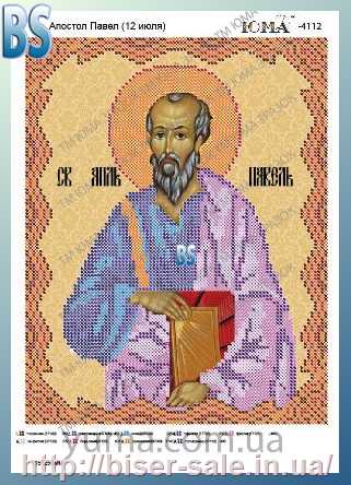 Схема, часткова вишивка бісером, атлас, ікона "Святий апостол Павло"