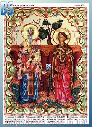 Схема, часткова вишивка бісером, атлас, ікона "Святі Купріян і Устинья"