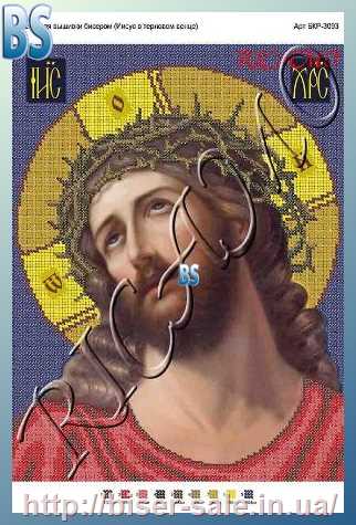 Схема, часткова вишивка бісером, габардин, ікона "Ісус у терновому вінці"