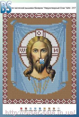 Схема, часткова вишивка бісером, габардин, ікона "Нерукотворний Спас"