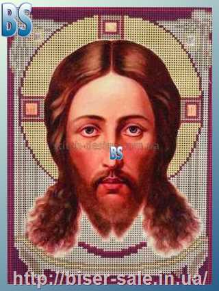 Схема, часткова вишивка бісером, габардин, ікона "Спас Нерукотворний"