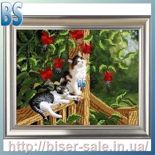 [АКЦІЯ] Схема, часткова вишивка бісером, атлас, "Кошенята" ("На веранді")