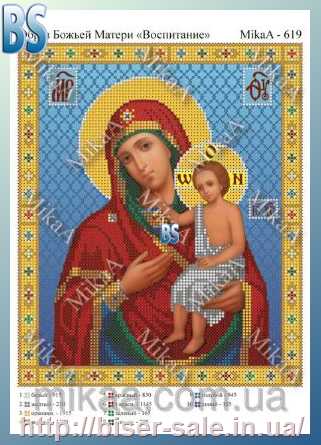 Схема, часткова вишивка бісером, габардин, ікона "Божья Матерь "Виховання""