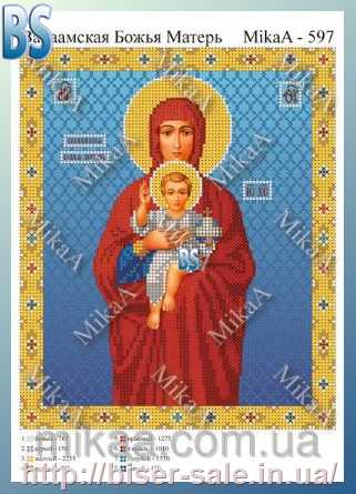 Схема, часткова вишивка бісером, габардин, ікона "Божья Матерь "Валаамская"
