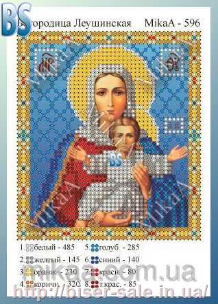 Схема, часткова вишивка бісером, габардин, "Божья Матерь Леушинская"