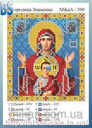 Схема, часткова вишивка бісером, габардин, "Богородиця Знамення"