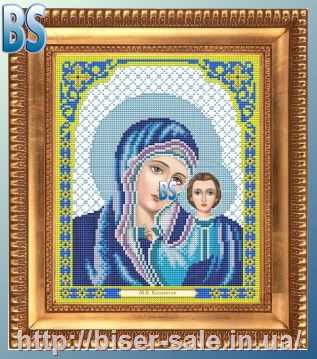 Схема, часткова вишивка бісером, габардин, ікона "Божия Матерь "Казанська" у синьому"