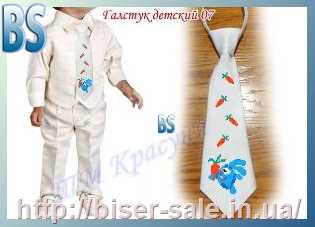 [АКЦІЯ] Краватка дитяча, вишивка бісером, атлас, "Крош із морквиною" (біле тло)