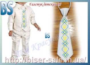 [АКЦІЯ] Краватка дитяча, вишивка бісером, атлас, "Герб України в орнаменті" (біле тло)