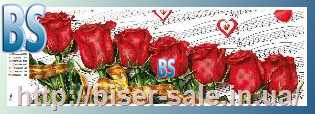 Схема, частичная вышивка бисером, атлас, "Розы с нотами"