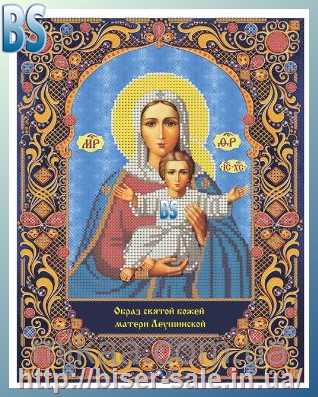 Схема, часткова вишивка бісером, габардин, ікона "Божья Матерь "Леушинская"