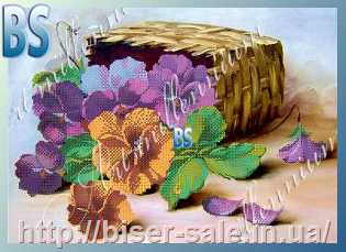 Схема, частичная вышивка бисером, габардин, "Анютины глазки"