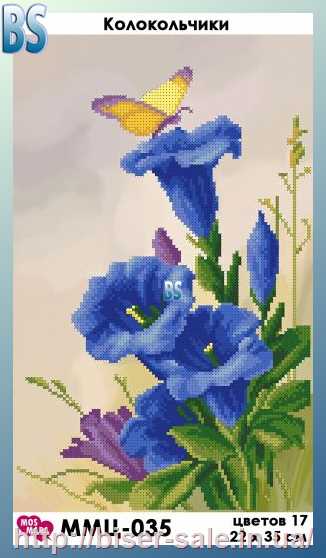 Схема, частичная вышивка бисером, габардин, "Колокольчики" ("Дзвіночки")