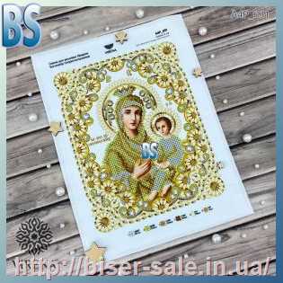Схема, частичная вышивка бисером, габардин, "Божа Мати Остробрамська"
