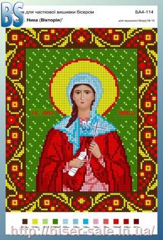 Схема, часткова вишивка бісером, габардин, ікона "Св. мц. Ника (Вікторія)"
