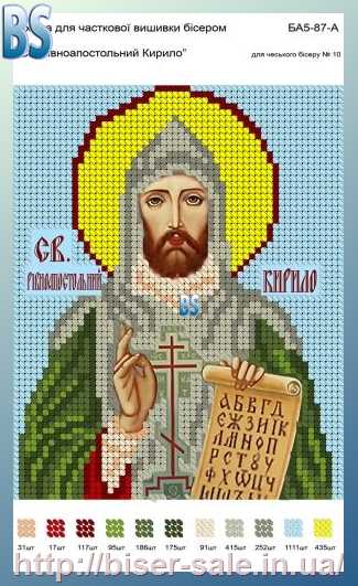 Схема, часткова вишивка бісером, атлас, ікона "Св. равноап. Кирило"