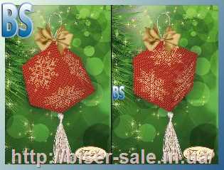 Схема, полная вышивка бисером, габардин, Подвеска - кубик "Золотые снежинки"