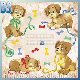 [АКЦІЯ] Схема, часткова вишивка бісером, полотно, Дитяча метрика "Щенята"