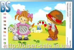 Схема, часткова вишивка бісером, атлас, "Хлопчик і дівчинка" ("Несподівана зустріч")