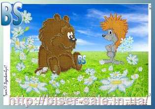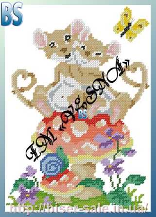 Схема, часткова вишивка бісером, атлас, "Мишеня із квіточкою"