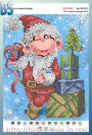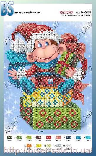 Схема, часткова вишивка бісером, габардин, "Мавпочка з подарунками"