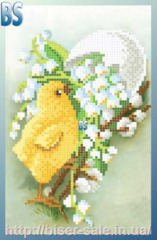 Схема, часткова вишивка бісером, атлас, "Курча й конвалії"