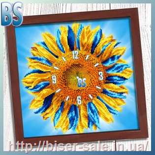 Схема-заготовка годинник, часткова вишивка бісером, габардин, "Соняшник"