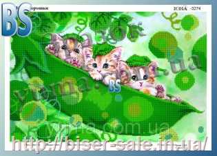 Схема, частичная вышивка бисером, атлас, "Коти-горошки"