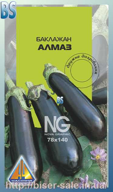 Баклажани Алмаз (0,5г), середньостиглий, кущ висотою 0,45-0,56м, плоди масою до 150г