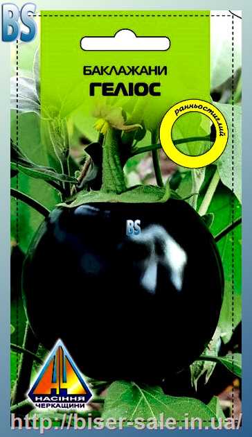 Баклажани Геліос (0.3г), ранньостиглий , кущ висотою 0,5-0,6м, плоди масою 300-700г