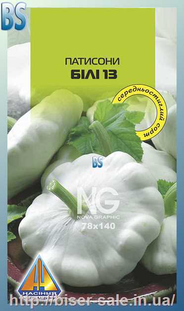 Патисони Білі (2г), ранньостиглі, кущові, плоди масою 300-350г