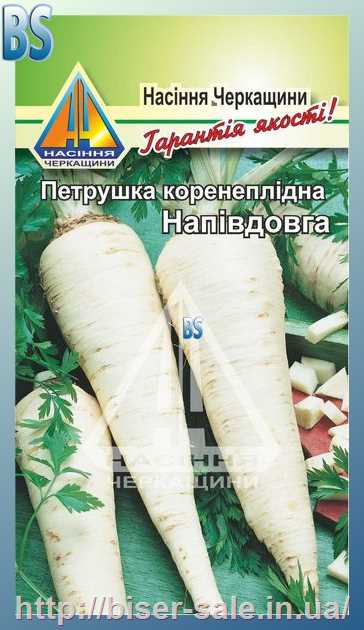 Петрушка коренева Напівдовга (10г), ранньостигла, коренеплід довжиною 20см, в діаметрі 4cм