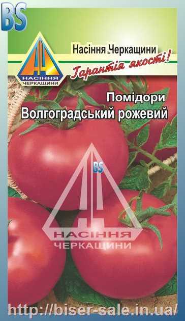 Помідори Волгоградський рожевий (0,2г), ранньостиглий, кущ висотою 0,45-0,5м, плоди масою 80-100г