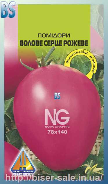 Помідори Волове Серце рожеве (0,1г), середньопізній, кущ висотою 1,5-1,7м, плоди масою 300-400г