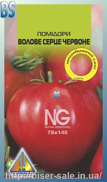 Помідори Волове серце червоне (0.1г), середньопізній, кущ висотою 1,5-1,7м, плоди масою 300-400г