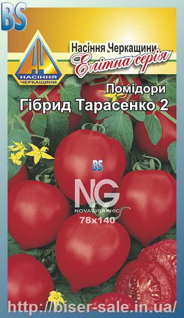 Помідори Гібрид Тарасенко 2 (0.1г), середньоранній, кущ висотою до 1,5м, плоди масою 60-80г