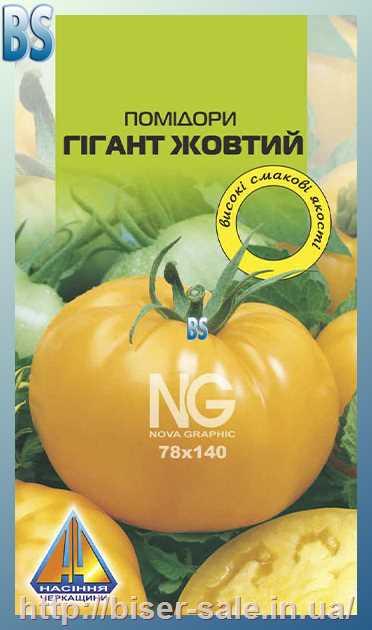 Помідори Гігант жовтий (0.1г), середньостиглий, кущ висотою 1,2-1,7м, плоди масою до 400г