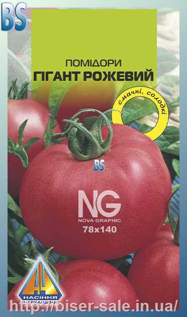 Помідори Гігант Рожевий (0,1г), середньостиглий, кущ висотою 2,0-3,0м, плоди масою 200-300г