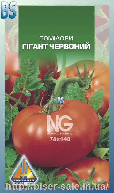 Помідори Гігант Червоний (0,1г), середньостиглий, кущ висотою 2,0-3,0м, плоди масою 200-300г