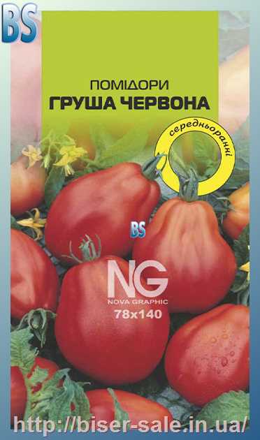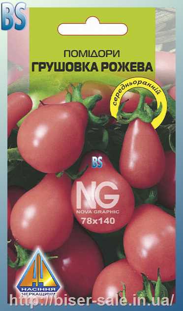 Помідори Грушовка (0,2г), середньоранній, кущ висотою до 0,5м, плоди масою до 150г