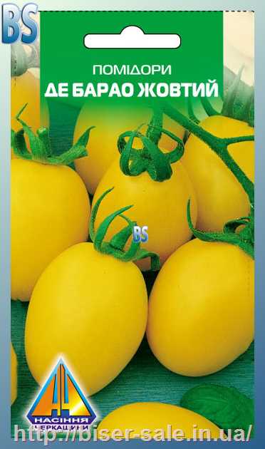 Помідори Де Барао Жовтий (0.1г), пізньостиглий, кущ висотою 2,0-3,0м, плоди масою 60-70г