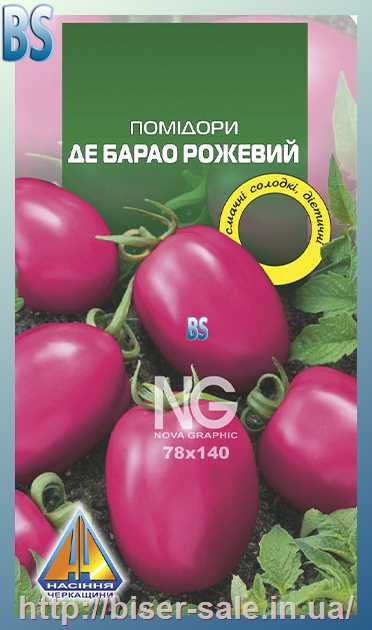 Помідори Де Барао Царське Рожеве (0,1г) євро, середньопізній, кущ висотою 2,0-3,0м, плоди масою 200-400г
