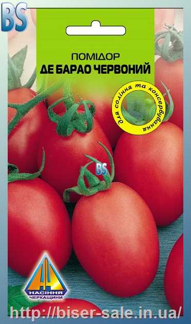 Помідори Де Барао Царський Червоний (0.1г), середньопізній, кущ висотою 2,5-3,0м, плоди масою 150-200г