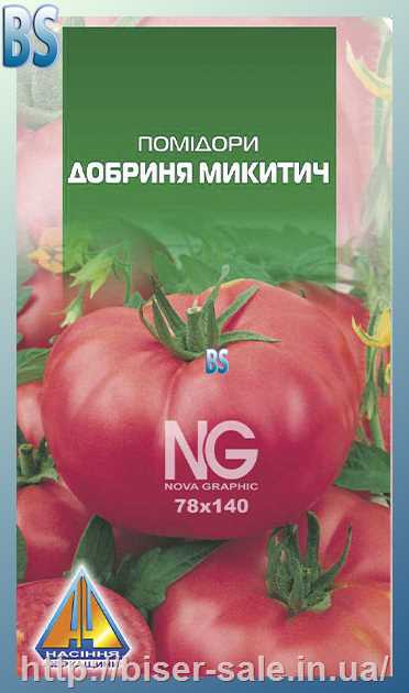 Помідори Добриня Микитич (0.2г), середньостиглий, кущ висотою до 2,0м, плоди масою 250-400г