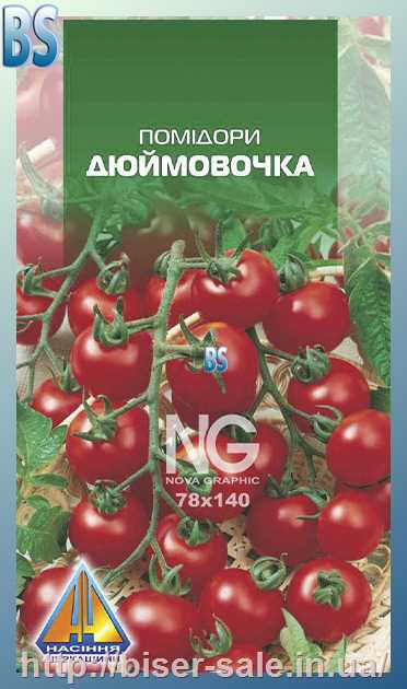 Помідори Дюймовочка (0.1г), ранньостиглий, кущ висотою до 1,5м, плоди масою 15-20г