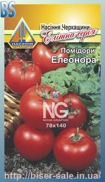 Помідори Елеонора (0.2г), ранньостиглий, кущ висотою 0,4-0,6м, плоди масою 80-90г