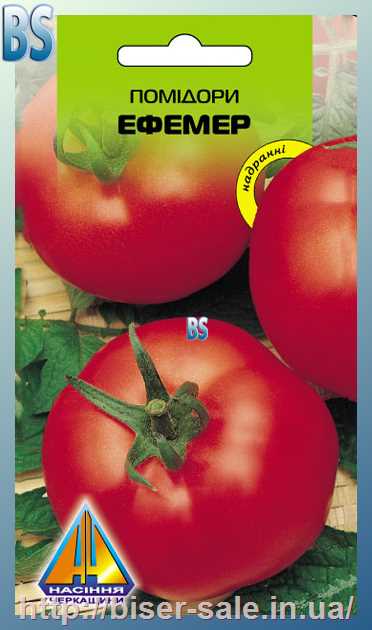 Помідори Ефемер (0.2г), ранньостиглий, кущ висотою 0,3-0,4м, плоди масою 80-100г